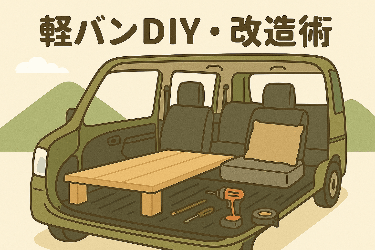 「本格的なバンライフはハードルが高いけれど、ちょっと車中泊をしてみたい」「自分でカスタムした軽バンで、気ままに出かけてみたい」──そんな思いから、このブログは始まりました。