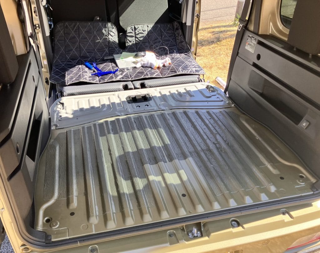 車中泊や荷物の出し入れをしていると、意外と気になるのが「荷台フロア」。金属むき出しの床からは、冷気も音もダイレクトに伝わってきて、冬場はとくにヒンヤリ…。お茶を飲もうと座ってみても、床のゴツゴツが直に伝わって痛い!これはなんとかしたい…とずっと思っていました。