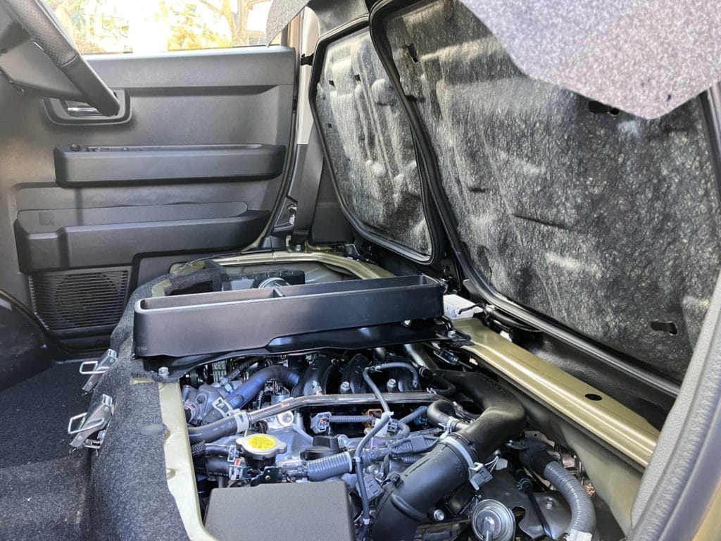 エンジンの隙間から地面が見える構造に驚きつつ、「これは断熱が必要だ…!」とあらためて実感しました。