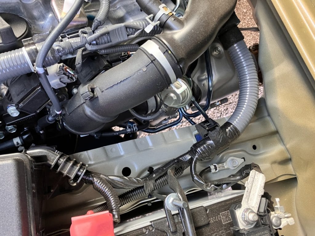 アトレーのシート下は、運転席・助手席どちらもフタのようにパカッと開く構造になっています。 中には配線やバッテリーなどの電装系がぎっしり詰まっており、DIYには少し気を遣う場所でもあります。